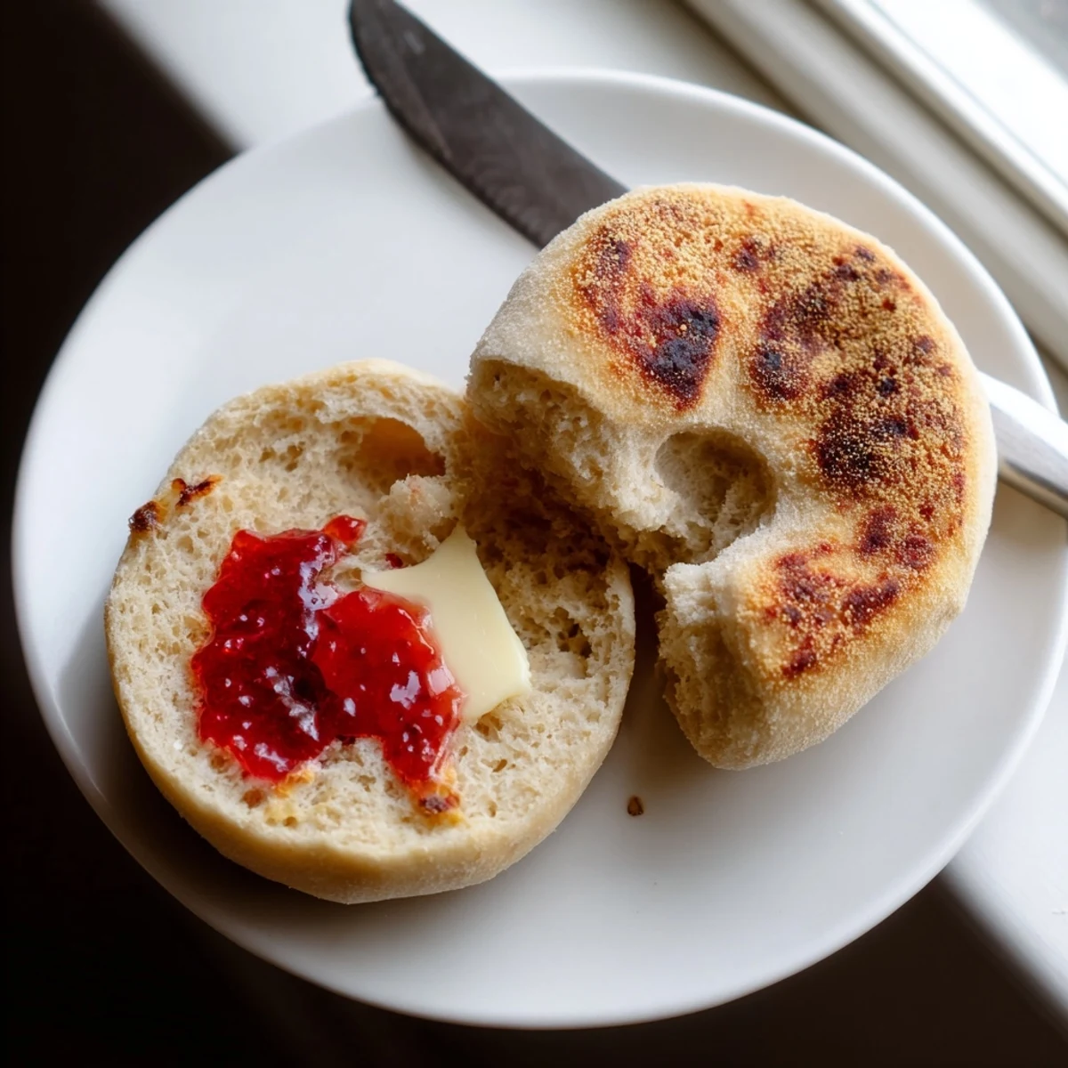 The key to those famous nooks and crannies is actually the fork splitting method. Never use a knife, which compresses the interior, but instead pierce the edge all around with a fork and pull apart gently. This creates those rough surface areas that catch melted butter and jam in every single bite.