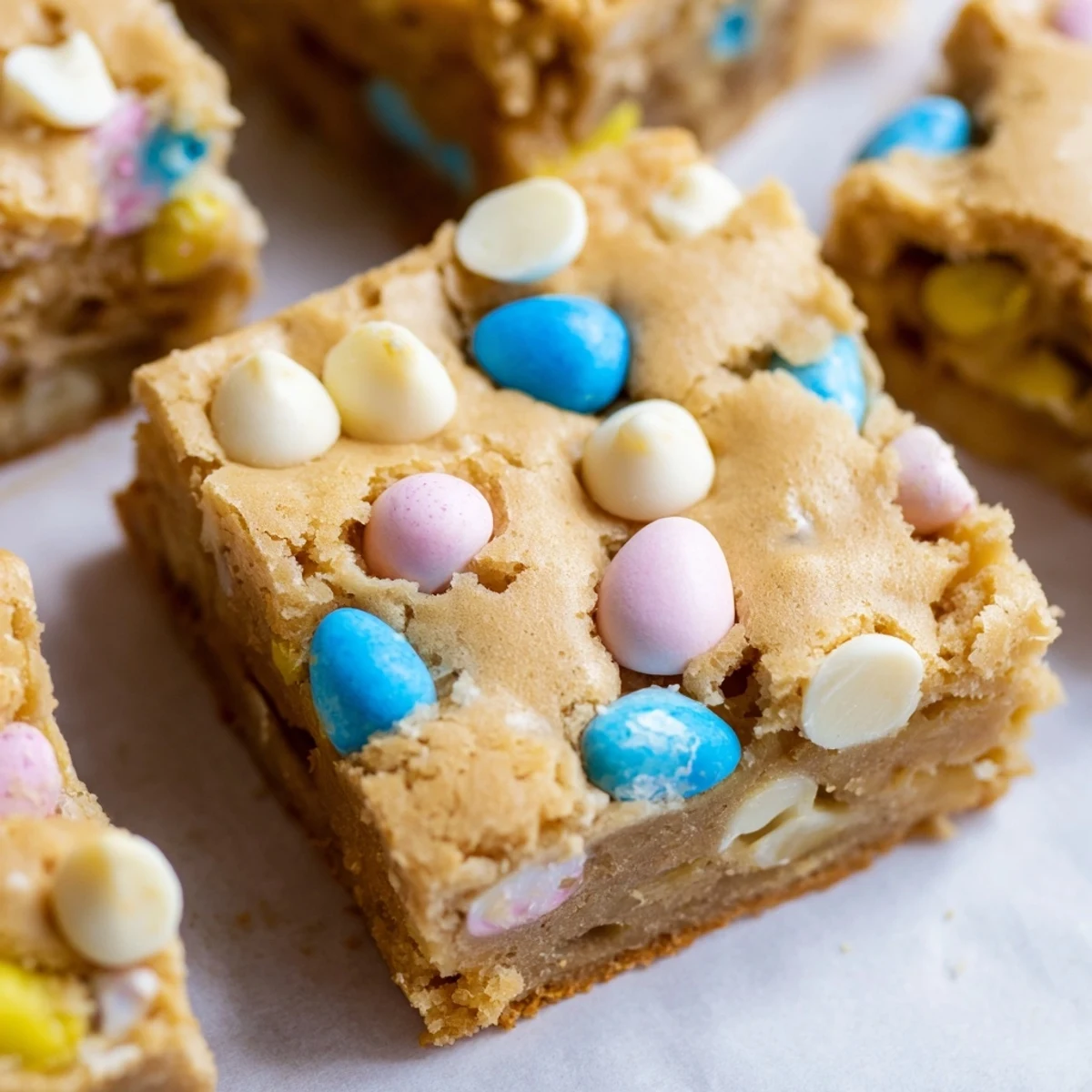 The first Easter I spent away from home, my roommate brought home a bag of those pastel speckled Mini Eggs and we ate half of them standing in the kitchen before I even thought about baking. There was something about that candy shell shattering between my teeth that felt like spring itself breaking through winter. I ended up throwing these blondies together at 11 PM with whatever we had in the pantry, and they became the thing we made every year after that. Some traditions start accidentally.